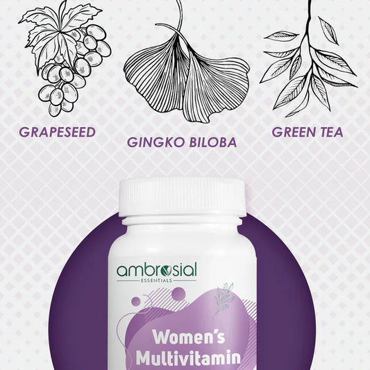 أمبروزيال مكمل غذائي متعدد الفيتامينات للنساء مع خلاصة بذور العنب، الشاي الأخضر، والجينكو بيلوبا – Ambrosial Women’s Multivitamin with Grape Seed, Green Tea & Ginkgo Biloba | 120 Tablets