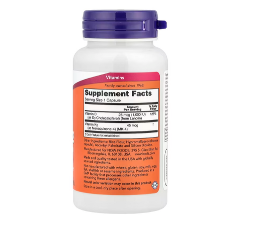 نفذت الكميةNOW Foods, Vitamin D-3 & K-2, 120 كبسولة
