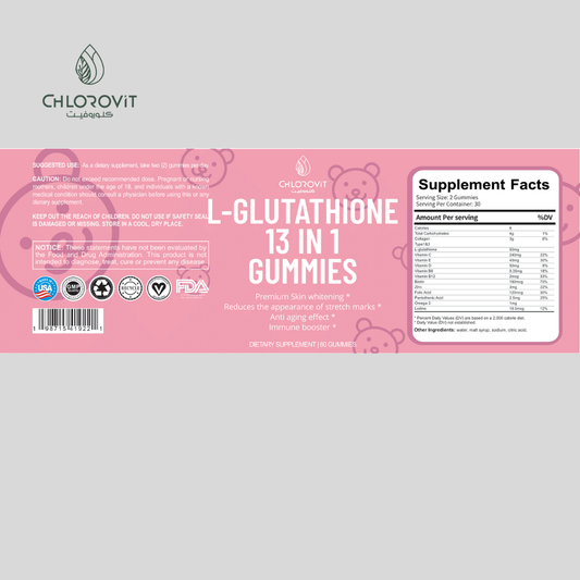 L-Glutathione 13 in 1 Gummies - 60 Gummies for Skin Health and Brightening Support | حبة لتعزيز صحة البشرة وتفتيحها
