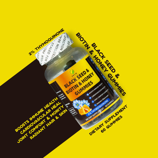 علكات بيوتين الحبة السوداء والعسل 60 حبة | لتعزيز صحة الشعر، البشرة، الأظافر والمناعة