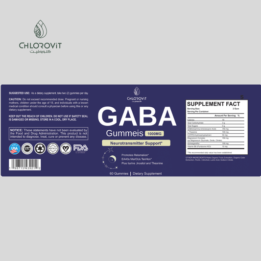 GABA Gummies – 60 Gummies with Gamma-Aminobutyric Acid (GABA) for Natural Relaxation and Mood Enhancement | حبة تحتوي على حمض جاما أمينوبوتيريك لدعم الاسترخاء الطبيعي وتحسين المزاج |