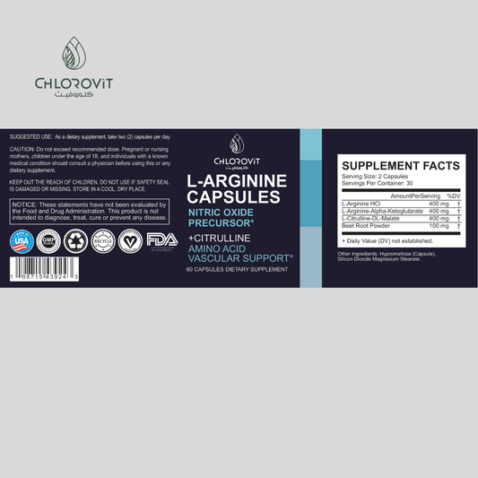 L-Arginine Capsules - مكمل غذائي لدعم الدورة الدموية وصحة القلب | 60 كبسولة | L-Arginine Supplement for Circulatory and Heart Health Support – 60 Capsules
