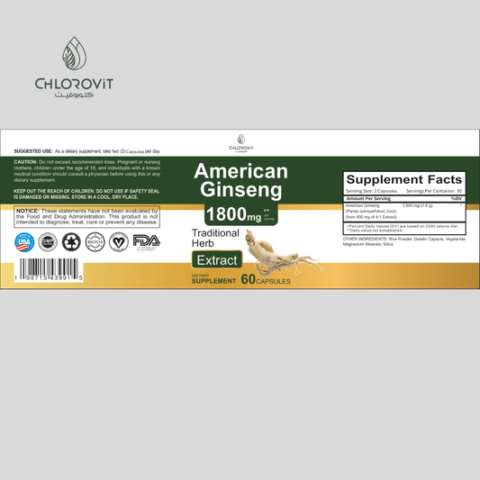 American Ginseng - مكمل غذائي لدعم الطاقة الطبيعية، التركيز، وصحة المناعة | 60 كبسولة | American Ginseng Supplement for Natural Energy, Focus & Immune Support – 60 Capsules