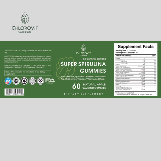 Super Spirulina Gummies - دعم الطاقة والمناعة بشكل طبيعي | 60 حبة قابلة للمضغ | Boost Energy & Immunity Naturally - 60 Chewable Gummies