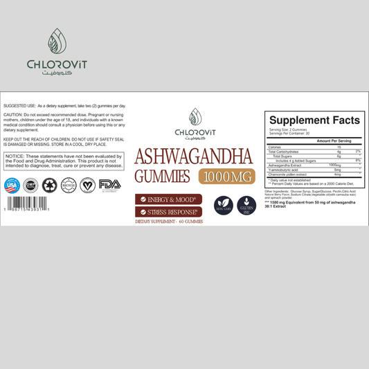 Ashwagandha Gummies 60 gummies – 1000mg | اشواجندا دعم طبيعي لتقليل التوتر وتحسين الطاقة والمزاج