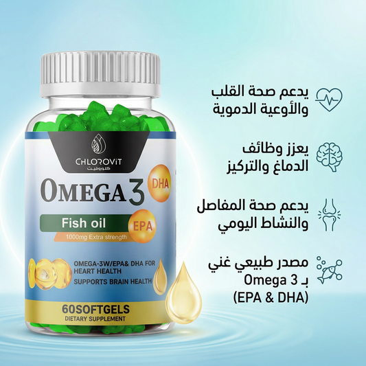 أوميغا 3 زيت السمك 1000 مجم (Omega-3 Fish Oil) – دعم القلب والدماغ | 60 كبسولة