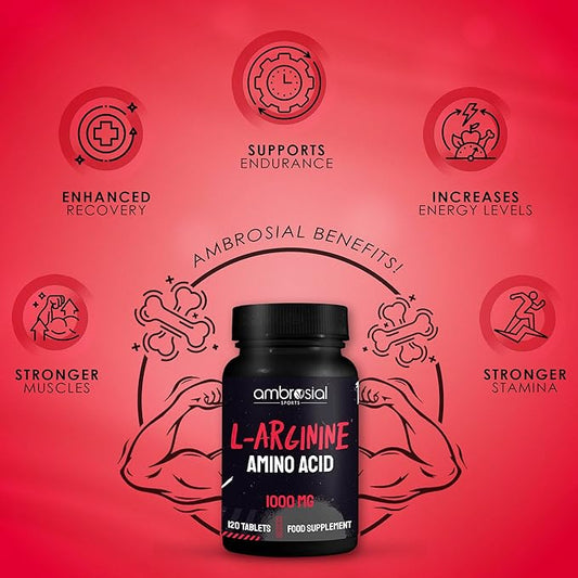 أمبروزيال إل-أرجينين - مكمل غذائي للأحماض الأمينية | 1000 ملغ لدعم التحمل وتعزيز ضخ العضلات | مكمل غذائي عالي الامتصاص | عبوة تحتوي على 120 قرصًا