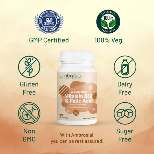 فيتامين B12 مع حمض الفوليك للطاقة والأعصاب (Vitamin B12 + Folic Acid) – 1500 mcg