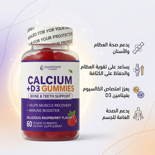 علكات كالسيوم + فيتامين D3 (Calcium + D3 Gummies) – دعم العظام والأسنان | 60 حبة