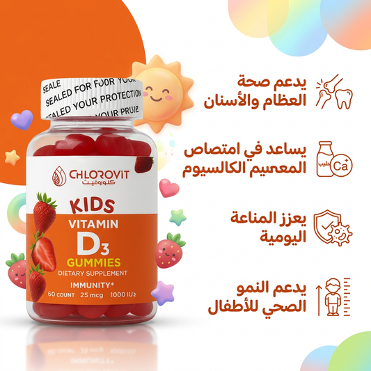 فيتامين D3 للأطفال (Kids Vitamin D3 Gummies) – دعم العظام والمناعة | 60 حبة