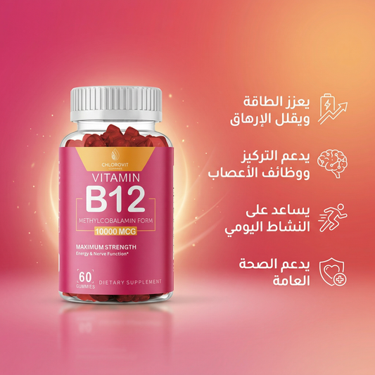 علكات فيتامين B12 للطاقة والأعصاب (Vitamin B12 Gummies) – دعم النشاط والتركيز | 60 حبة