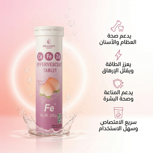 أقراص فوّارة كالسيوم + حديد + زنك (Minerals Effervescent Tablets) – نكهة الخوخ | 20 قرص